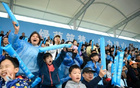 此次揭幕战一经官宣便成为全城热点,5000张门票通过线上小程序实名预约、0.99元惠民发售,一上线迅速售罄,实现“一票难求”,赛场内座无虚席,呐喊声、欢呼声、助威声此起彼伏,足球氛围拉满。